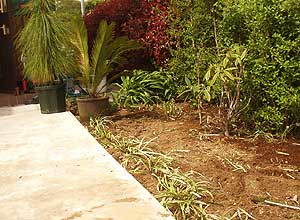 今回のターゲットは玄関に向かって右側のスペース。今までは母が適当にいろいろな植物を植えている場所でした。