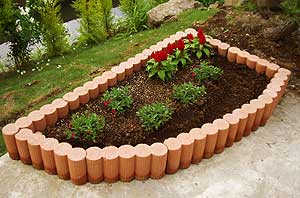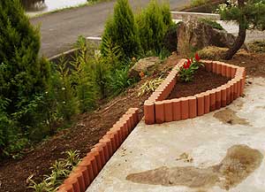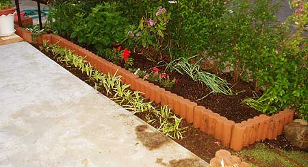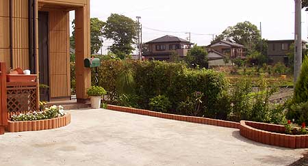 延長させていった先の角地にはブロックの囲い花壇にしました。ここもアール形にしました。四角の花壇よりやさしい表情になりますね。