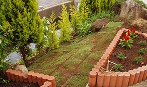 花壇の隣の斜頚スペースは芝を敷き詰めました。