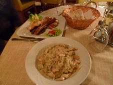 ミックスグリルとリゾット、ミネストローネ、サラダバーなど注文。![]() |