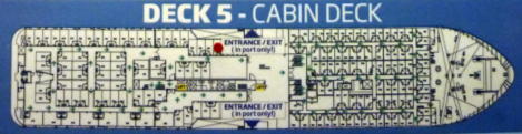 DECK7キャビンの見取り図:左下の赤い丸が滞在した部屋。一番後方だったので後方甲板への出入り口が近く、すぐに出られました。![]() |